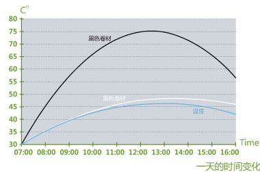 淺顏色的表面反射紫外線照射,卷材表面吸收熱量少,溫度低。