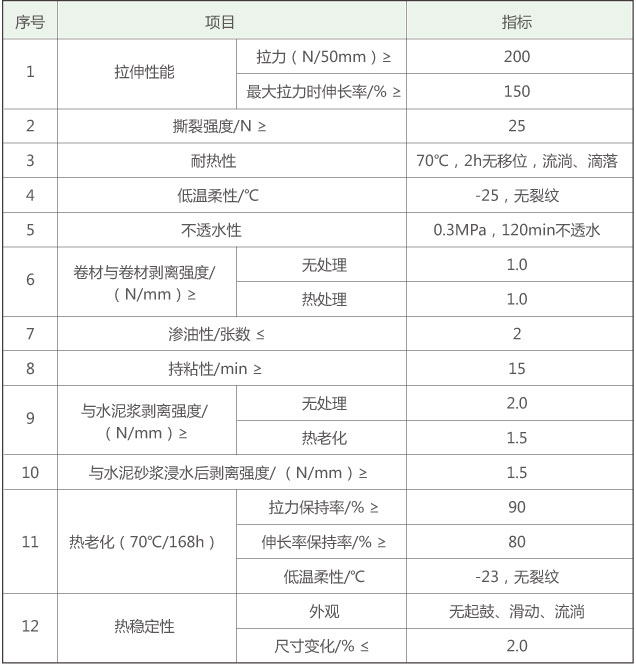 主要適合于工業與民用建筑的地下室、屋面等部位,以及對防水材料抗拉、延伸率和抗釘桿撕裂等性能要求較高的建筑部位防水、防潮工程。